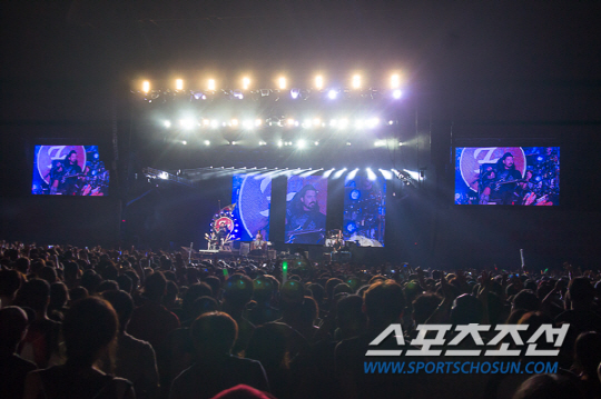 두번째 앨범의 히트곡 '에버롱(Everlong)'으로 포문을 열었고, 곡의 후반부에 연주를 멈추고 조용한 순간을 만들고 관객들을 맞이하였다. 관객들은 연신 '푸파이터스'를 외치며 뜨거운 함성을 전달하였고, 데이브그롤은 특수제작된 돌출무대를 향해 의자를 이동하여 관객들에 더욱 가까이 가서 관객들과 함께하였다. 이어 '멍키 렌치(Monkey Wrench)'와 '런 투 플라이(Learn to fly)'를 연달아 연주하며 분위기는 한층 뜨거워졌다.