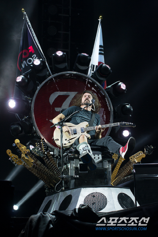 일찍이 데이브 그롤은 지난 6월 스웨덴에서 열린 공연 중 2곡을 한 뒤 무대에서 다리가 골절되는 부상을 입은 바 있다. 당시 부상에도 불구하고 응급처치만을 받은 뒤 휠체어에 앉아 3시간의 공연을 끝까지 마치는 록스피릿을 보여주었고, 이 후 몇번의 공연이 취소되며 내한 가능여부도 불투명했지만, 공연에 대한 의지로 직접 제작한 특수의자에 앉아서 투어를 계속 진행하고 있다. 공연장에는 그런 상황을 빗대어 '다리 골절 투어(Broken Leg Tour)'라고 새겨진 티셔츠를 입고 있는 관객도 드물지 않게 볼 수 있었다.