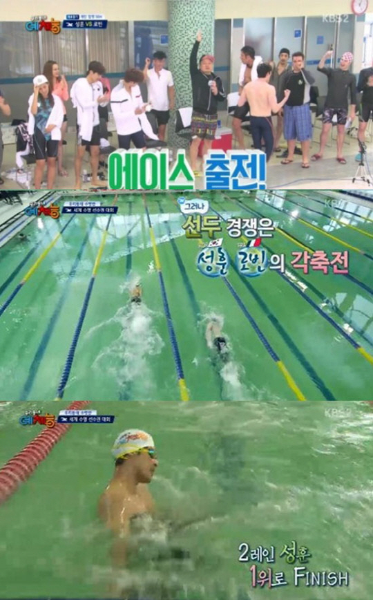 이날 방송에서는 제 4경기 접영 50M 대결에서 예체능 팀의 에이스 성훈이 글로벌 팀의 로빈과 대결을 펼쳤다. 앞서 로빈은 성훈에 패한적이 있어 설욕전을 다짐한 것.