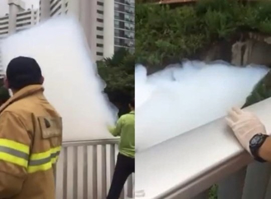 이날 각종 SNS와 온라인 커뮤니티에는 '경기도 하남시에 구름이 떨어졌다'라며 사진들이 게재됐다. 공개된 사진 속 거품들은 만져도, 물로 쏴도 사라지지 않아 궁금증을 자아냈다.