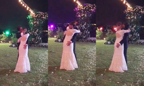 특히 이날 방송에서는 결혼식이 끝난 후 열린 피로연 현장을 담은 영상이 공개돼 눈길을 끌었다. 영상에서 배용준 박수진 부부는 잔잔한 음악이 흐르는 야외에서 다정하게 끌어안고 춤을 춰 부러움을 자아냈다. 특히 배용준은 진한 입맞춤과 함께 끌어안고 엉덩이를 만지는 등 진한 스킨십을 하며 박수진에 대한 애정을 드러내 시선을 모았다. 이에 두 사람을 지켜보고 있던 결혼식 하객들은 큰 소리로 호응하며 피로연의 열기를 더했다.