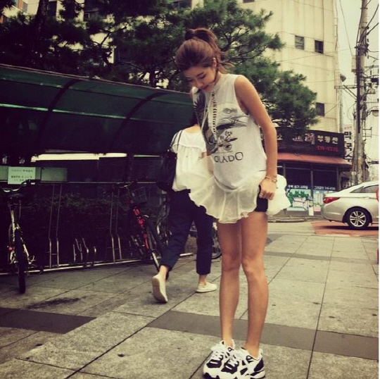 사진을 본 네티즌들은 "각선미 살아있네!", "운동화에도 굴욕 없는 길쭉길쭉한 팔다리", "여성스러운 옷에 운동화 센스! 따라 해 보고 싶다" 등의 다양한 반응을 보였다.