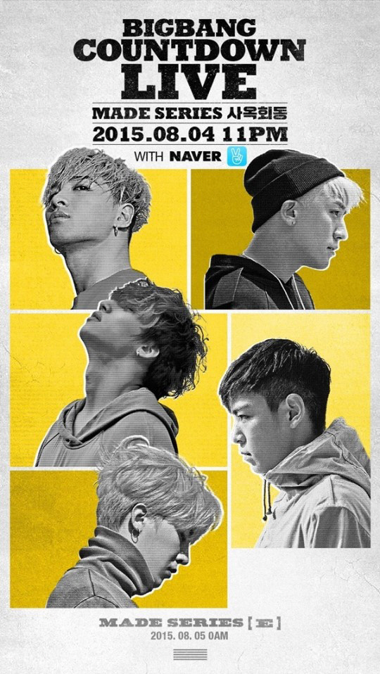 공개된 이미지에는 노란색 배경에 분위기 있는 빅뱅 멤버들의 모습이 흑백으로 담겨있어 눈길을 끈다. 또 이번 카운트다운 생중계 타이틀인 'BIGBANG COUNTDOWN LIVE MADE SERIES 사옥회동' 이란 문구가 적혀있어 YG사옥에서 빅뱅 멤버들이 회동 갖는 형식으로 진행됨을 예고했다.