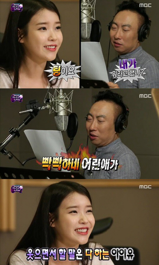 아이유는 1일 방송된 MBC 예능프로그램 '무한도전'에서 가요제 파트너인 박명수에게 노래 녹음 작업 중 가사를 지적해 시청자들의 관심을 모았다.