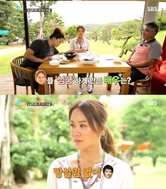 이날 엄정화는 최근 영화 '미쓰와이프'에서 함께 호흡을 맞춘 송승헌을 극찬했다. 그는 "송승헌과는 첫 호흡이다"라며 "원래 송혜교 같은 분이랑 하지 않냐. 저랑 만날 거라고 생각을 못했다"고 말문을 열었다.