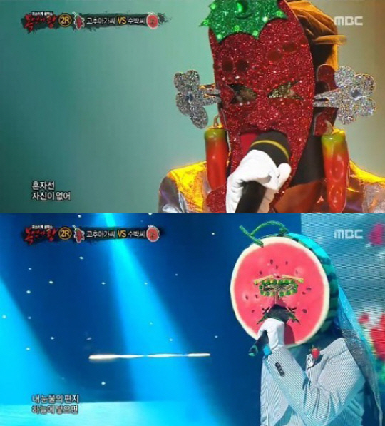 '복면가왕' 매운맛을 보여주마 고추아가씨와 웃는 얼굴에 수박씨가 맞대결을 펼쳤다.