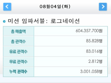 [스포츠조선 고재완 기자] 지난 달 30일 개봉한 '미션 임파서블: 로그네이션'이 개봉 6일만에 300만 관객을 돌파했다.