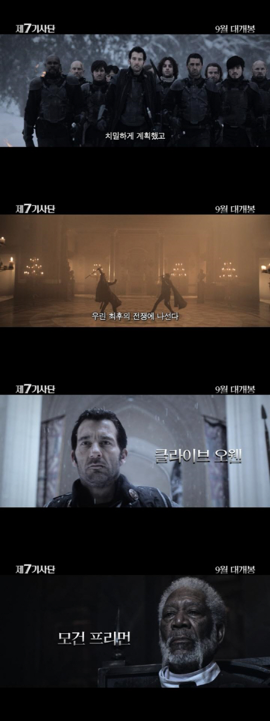 9월 10일 개봉 확정과 함께 공개된 '제 7기사단'의 메인 포스터는 타락한 왕국에 맞서 싸우는 전설의 기사단들 위로 '레이든'(클라이브 오웬), '바톡영주'(모건 프리먼)의 모습이 담겨 있어 이목을 집중시킨다. 긴장감이 감도는 두 사람의 모습은 타락한 정권에 지배당하지 않으려는 결연한 의지를 엿보게 한다. 여기에 "역사상 가장 위대한 기사들이 온다"라는 카피는 두 사람의 굳건한 표정 속에 담긴 결연한 의지와 함께 권력에 맞서는 기사들에 대한 궁금증을 증폭시킨다.