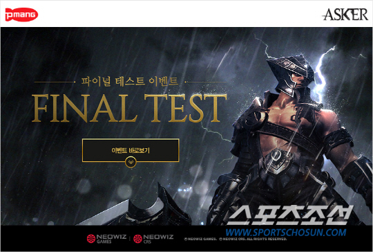 네오위즈게임즈는 온라인 액션RPG '애스커(ASKER)'의 파이널 테스트를 4일부터 6일까지 3일간 각각 오후 4시부터 자정까지 실시한다고 밝혔다.