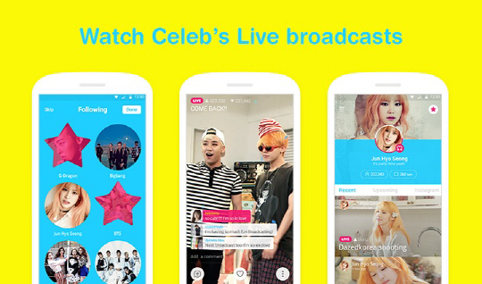 3일에는 밴드로 돌아온 원더걸스의 'REBOOT 쇼케이스 with V'와 걸스데이 소진의 'SOZZI's return 9000 preview', 카라의 'KA-LIVE', 씨엔블루 정용화의 '방송용' 등이 생중계로 진행됐다. 5일 밤 11시 YG사옥에서 V앱을 통해 실시간으로 공개되는 'BIGBANG COUNTDOWN LIVE with V'에서는, 빅뱅의 네 번째 '메이드(MADE)' 앨범 프로젝트 'E'의 신곡 '우리 사랑하지 말아요', 유닛GD&TOP의 '쩔어' 음원과 안무가 최초로 공개된다. 특히 GD&TOP 이 5년 만에 선보이는 컴백곡 공개 순간을 V앱을 통해 실시간으로 팬들과 함께할 예정. 이어 SMTOWN with 샤이니(5일), B1A4의 컴백 라이브(6일), FT아일랜드의 콘서트 리허설 프리뷰(7일), 방탄소년단의 태국 스페셜 라이브(7일), 비스트의 백스테이지 라이브(8일) 등 빅 스타들의 영상이 예정돼 있다.