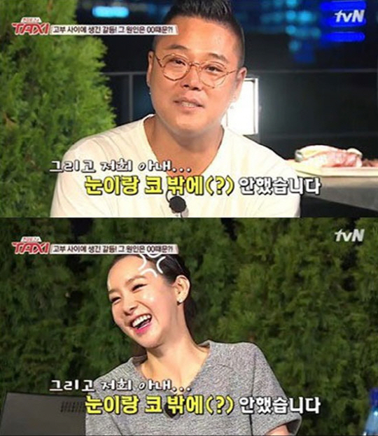 송호범은 "아내는 눈이과 코만 성형수술을 했다. 악플을 자제해주셨으면 한다"고 재차 말해 웃음을 안겼다.
