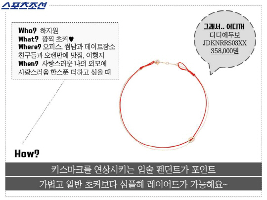 #어디꺼 #스포츠조선 #너를사랑한시간 #하지원 #초커 #목걸이 #지원언니_앵두입술_꼭닮은_섹시발랄_펜던트 #러블리초커 #디디에두보