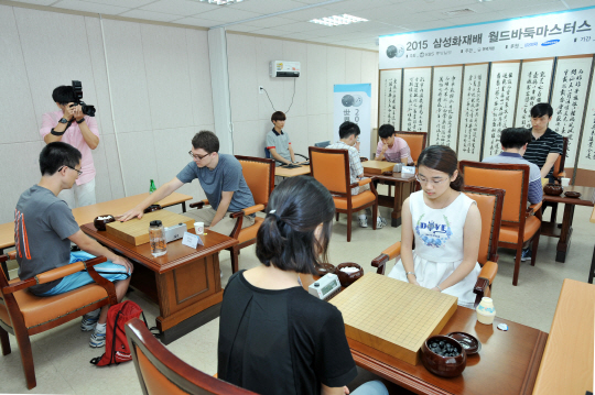 ◇최철한 9단 등 한국 기사 8명이 2015 삼성화재배 월드바둑마스터스 본선 32강에 합류했다. 5일 열린 통합예선 결승 대회 장면. 사진제공=한국기원