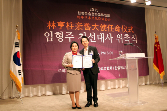 신경숙 회장은 "대한민국을 대표하는 세계적 팝페라테너 임형주 씨를 우리 협회 최초의 친선대사로 위촉하게 되어 매우 영광스럽고 기쁘다"며 이어 "앞으로 임형주 씨의 아름다운 노래가 한국과 중국 양국의 문화학술교류 에 큰 기여를 하리라 믿는다"는 소감을 전했다.