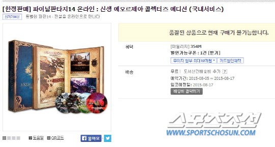오는 14일 사전서비스를 앞둔 온라인게임 '파이널판타지14'의 콜렉터즈 에디션이 판매 하루 만에 전량인 2천개가 매진됐다.