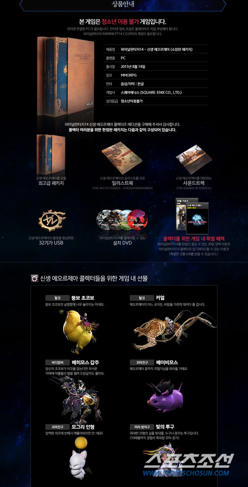 아이덴티티모바일의 관계자는 "소장판 패키지는 게임을 기다려주신 국내 파이널판타지14 팬들을 위해 준비한 이벤트성 제품으로 판매된 2천개 외에 추가 생산은 없다"며 "14일 진행될 파이널판타지14의 사전 오픈에도 많은 관심을 부탁드린다"라고 전했다.