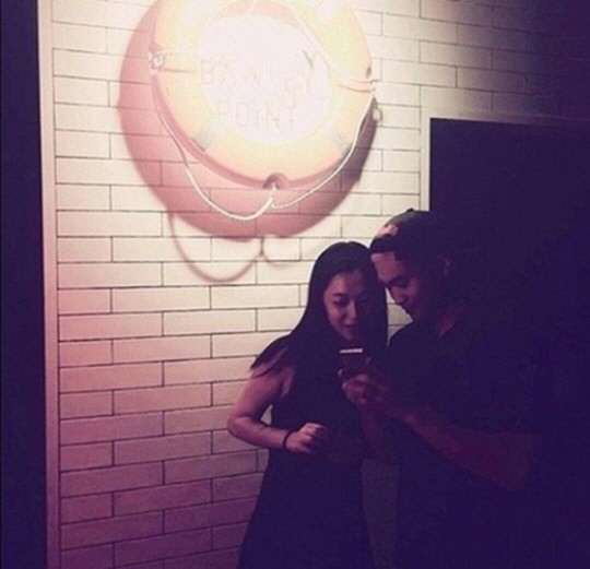 공개된 사진 속에는 휴대폰 화면을 응시하고 있는 설리와 최자의 모습이 담겼다.