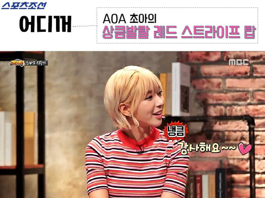 #어디꺼 #스포츠조선 #AOA #초아 #스트라이프탑 #숏컷과_함께_발랄함_업 #자막과_깔맞춤? #안지앤