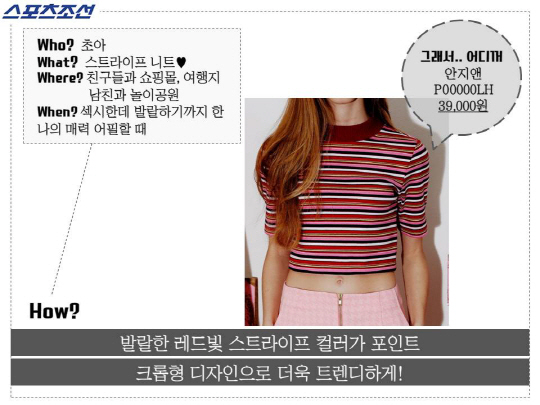 [어디꺼] AOA 초아의 발랄섹시한 레드빛 스트라이프 탑?
