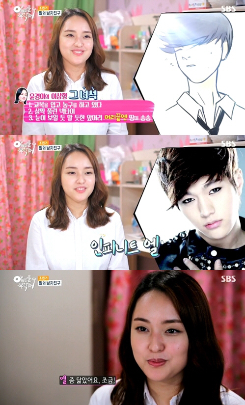 조윤경은 자신의 이상형으로 전형적인 '만찢남'(만화를 찢고 나온 남자)를 꼽았다. 그리고 그의 남자친구가 그런 미소년 스타일이라고. 조윤경은 "인피니트 엘이 이상형이다. 남자친구가 조금 닮았다"고 말했다.