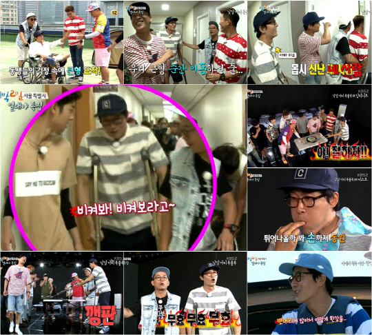 그는 인피니트와 1라운드 대결을 펼친 뒤 2라운드 대결 상대로 비스트가 선정돼자 격하게 실망했다. 또 3라운드 대결 상대로 비스트가 결정돼자 먼 발치에서 목발로 다트 핀을 쳐내며 "무효 무효 무효"라고 외쳐 현장을 웃음바다로 만들었다. 그런가 하면 비스트를 데리러 가는 도중 걸그룹 여자친구의 대기실을 지나치게 되자 카메라와 김준호까지 밀쳐가며 여자친구에게 인사를 하는 열정을 보였다.