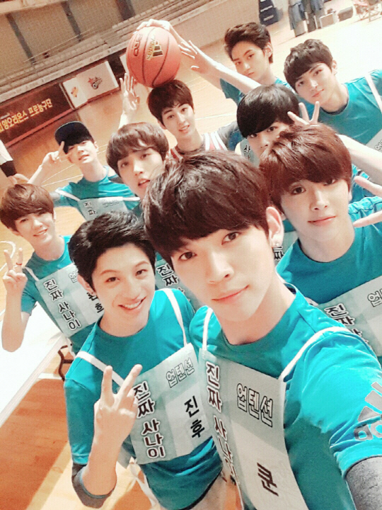 10인조 신인 보이그룹 업텐션(UP10TION 진후, 쿤, 고결, 웨이, 비토, 우신, 선율, 규진, 환희, 샤오)의 MBC 추석특집 '2015 아이돌 육상 농구 풋살 양궁 선수권대회'(이하 '아육대') 참가 인증 사진이 공개됐다.