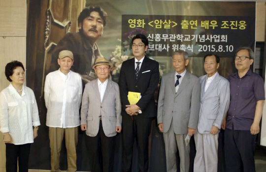 지난 10일 오후 3시 서울 청량리에 위치한 민족문제연구소에서 열린 홍보대사 위촉식에는 신흥무관학교 기념사업회 임원진을 비롯해, 신흥무관학교 교장을 지낸 윤기섭 선생님의 따님 윤경자 여사, 한국광복군 총사령관 지청천(일명 이청천) 장군의 외손자인 이준식 박사 등 독립운동사 후손들이 참석해 자리를 빛냈다. 조진웅은 "뜻 깊은 자리에 초대해주시고, 홍보대사로 위촉해주셔서 감사하다. '암살'을 촬영하면서 태극기 앞에서 수류탄을 들고 환하게 웃고 있는 분들을 보며 믿을 수 없을 정도로 그 담대함이 존경스러웠다. 실제로 독립을 위해 싸우신 분들의 어려움을 생각하니 마음이 뭉클했고, 그 분들의 희생이 헛되지 않게 더 열심히 잘 살아야겠다는 생각이 들었다"라며 가슴 벅찬 소감을 밝혔다.