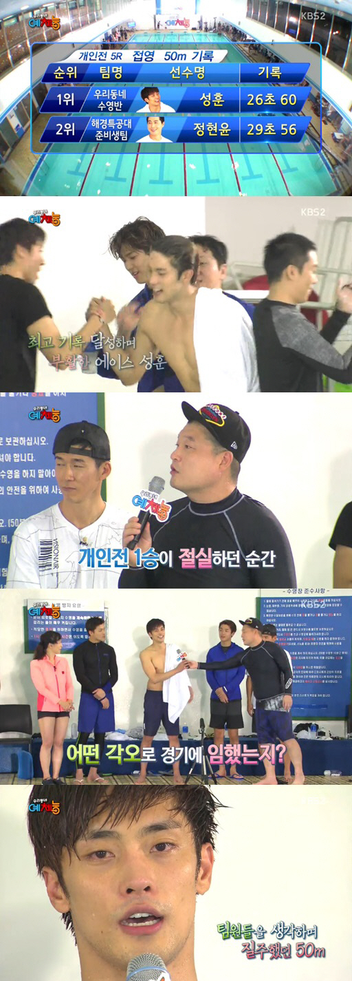 '우리동네 예체능' 성훈이 해양특공대 준비생을 상대로 첫 승리를 거머쥐었다.