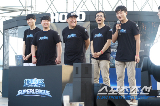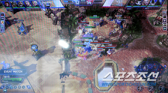 블리자드 엔터테인먼트와 OGN의 히어로즈 오브 더 스톰 첫 e스포츠 공식 경기 슈퍼리그에 앞서 전 프로게이머들이 참가한 이벤트 매치가 해운대 특설 무대에서 진행됐다.