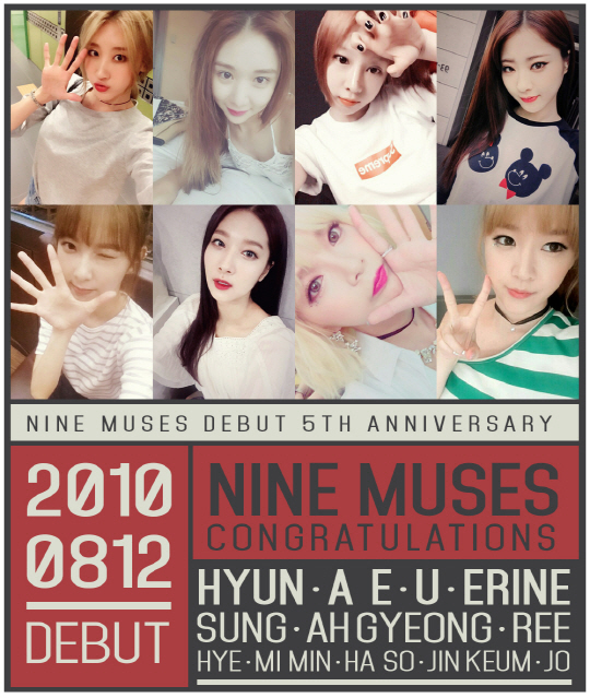 걸그룹 나인뮤지스(현아, 이유애린, 성아, 경리, 민하, 혜미, 소진, 금조)가 데뷔 5주년을 맞았다.