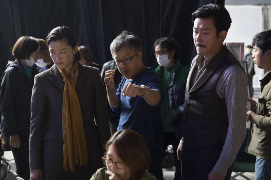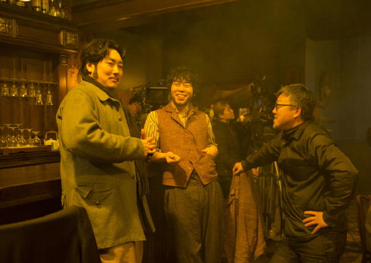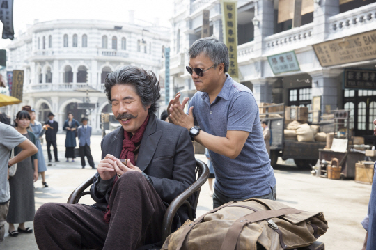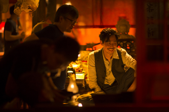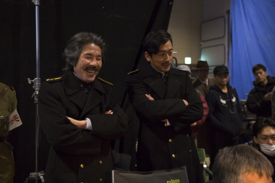 두 얼굴을 지닌 임시정부대원 '염석진' 역을 맡아 지독한 몰입을 선보인 이정재는 카메라 밖에서 특유의 여유로운 미소로 중후한 매력을 선보인다. 또한 촬영을 마친 후 똑같은 포즈로 팔짱을 끼고 촬영장면을 모니터 하는 하정우와 오달수는 닮은 듯 다른 매력을 뽐내며 카메라 뒤에서도 완벽한 콤비플레이를 과시했다.