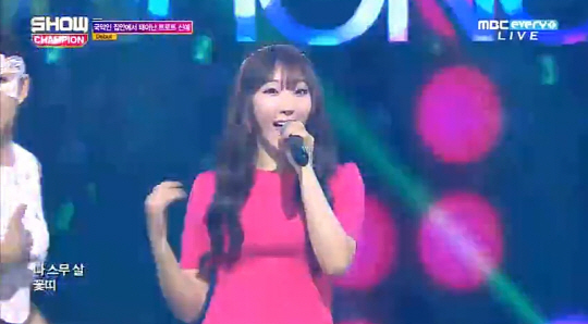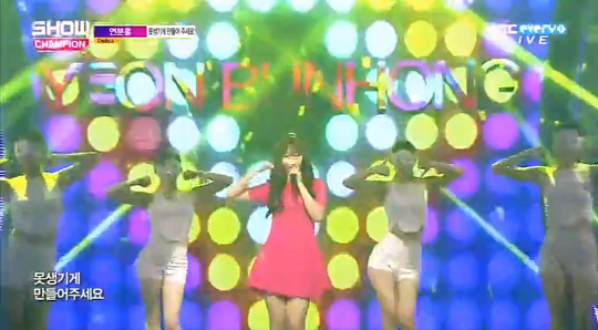 트로트 신예스타 연분홍이 '분홍 옷'을 입고 12일 MBC MUSIC '쇼 챔피언'에 나타났다.