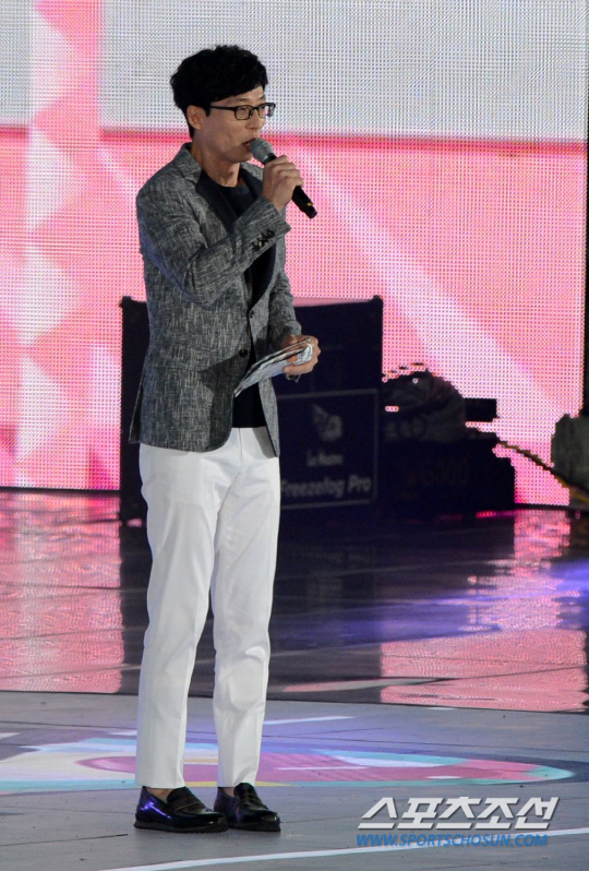MBC 무한도전 영동고속도로 가요제 무대가 13일 강원 평창 알펜시아 스키점프대에서 펼쳐졌다. 유재석이 인사말을 하고 있다. 이번 가요제에는 유재석-JYP(박진영), 박명수-아이유, 정준하-윤상, 정형돈-밴드 혁오, 하하-자이언티, 황광희-지드래곤 X 태양 등 모두 6팀 등이 출연한다. 평창=허상욱 기자 wook@sportschosun.com/2015.08.13/