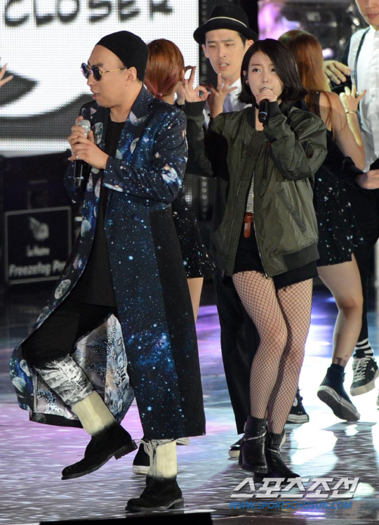 아이유는 13일 오후 강원도 평창군 대관령 알펜시아 리조트 스키점프대 앞에서 열린 '무한도전 가요제 2015 영동고속도로'에서 박명수와 함께 무대에 올랐다.