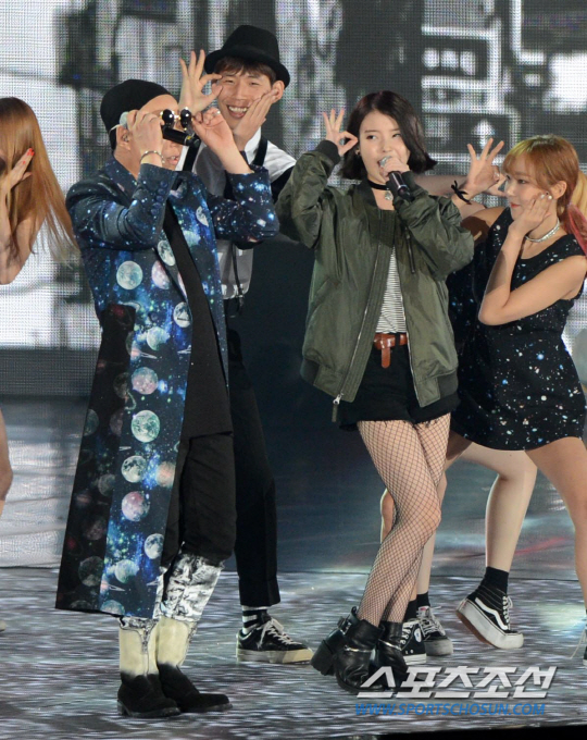 아이유는 13일 오후 강원도 평창군 대관령 알펜시아 리조트 스키점프대 앞에서 열린 '무한도전 가요제 2015 영동고속도로'에서 박명수와 함께 무대에 올랐다.