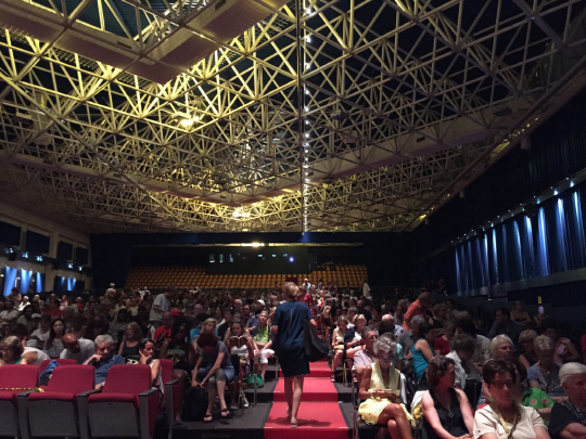 '지금은맞고그때는들리다'팀은 지난 8월 13일 오후 2시 로카르노국제영화제 Fevi 상영관에서 열린 공식 상영에 앞서 홍상수 감독과 배우 김민희가 집행위원장 까를로 샤뜨리안의 소개에 따라 무대인사에 올랐고 3000석을 가득 메운 현지 관객들은 뜨거운 환영의 박수를 보냈다고 현지 관계자는 전했다. 또한 관객들은 상영 내내 시종일관 유쾌한 웃음을 터뜨리며 상영이 끝날 때까지도 자리를 지키는 이례적인 반응을 보여 주었고 상영이 끝난 후에는 기립 박수를 보내며 거장의 귀환에 다시 한번 뜨겁게 반응했다고 전했다. 이어진 관객과의 대화를 위해 자리를 이동한 야외 정원 Spazio Cinema 역시 만석을 이룬 진풍경을 보여주었으며 끊임없이 이어지는 관객들의 다양한 질문에서 홍상수 감독의 작품에 대한 전세계 팬들의 변치 않은 관심과 애정을 가늠할 수 있었다고 현지 관계자는 전했다.