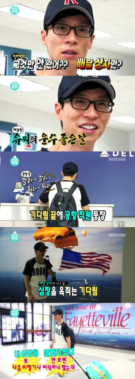 유재석은 "다음 비행기에도 안 오면 어떡하나"라며 초조해 했지만, 다행히 아이스박스는 예정대로 배달되 안도의 한숨을 쉬었다. <스포츠조선닷컴>