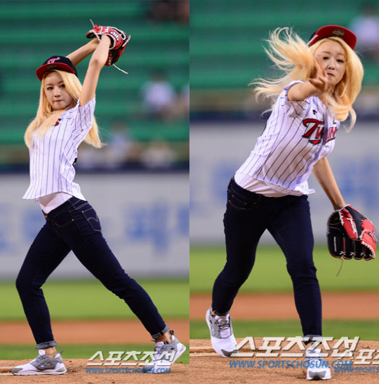 이어 허구연 해설자가 "제가 본 여성 연예인 시구 1위로 꼽고 싶다. 투수 판은 밟고 던졌다"고 극찬했다. <스포츠조선닷컴>