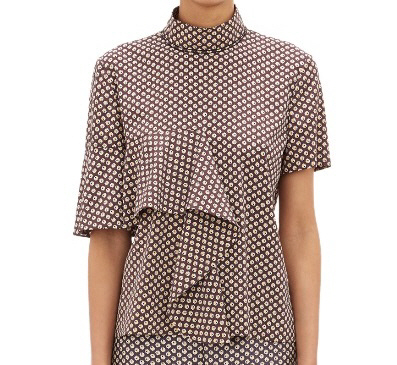 직장 상사에게 불려간 하지원. 그녀의 프로페셔널한 모습을 완성한건 매력적인 와인 컬러 바탕에 감각적인 도트 패턴이 가득한 블라우스다. 군데군데 디테일된 러플라인과 좌, 우의 소매 길이가 다른 언밸런스한 디자인 매력적이다. 한쪽으로 늘어뜨린 긴 헤어스타일과 이어링, 시계까지 더해져 세련된 커리어우먼룩을 완성했다. 마르니의 제품.