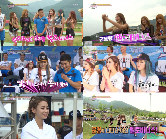 헬로비너스는 16일 방송된 KBS2 '출발 드림팀2' 2015 문경세계군인체육대회 특집에 드림팀 여자 대표 선수로 출연했다.