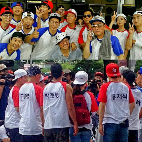 공개된 사진에는 SBS '일요일이 좋다 런닝맨'(이하 런닝맨) 촬영에 함께한 출연진이 다 함께 모여 포즈를 취하고 있다. 특히 김건모, 이하늘, 이재훈, 구준엽, 박준형 등 90년대 가수들과 런닝맨의 모습이 담겨있어 추억을 떠올리게 한다.
