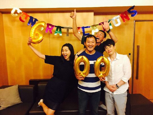 '베테랑' 600만 관객 기념 컷. 왼쪽부터 장윤주 정만식 황정민 류승완 감독.