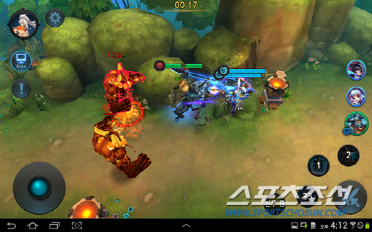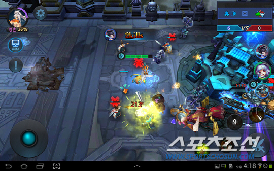 PvP인 AOS에서도 3영웅 플레이는 이어진다. 일직선의 내하교와 2갈레 길이 존재하는 오행산에서 랜덤매칭, 와이파이 대결 등으로 상대와 겨룰 수 있으며 흡사 PC에서 즐기는 리그오브레전드의 맛을 모바일에서 느낄 수 있다.