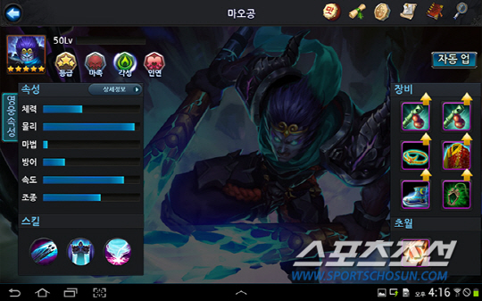현지화 작업도 국내 유저에 맞춰 순조롭게 진행됐다. 각 영웅들의 개별적인 성우 작업은 물론 일러스트도 중국 스타일을 덜어내면서 최대한 국내 취향에 맞췄다. UI는 국내 RPG 방식으로 변경하면서 불편함을 최소화했다.