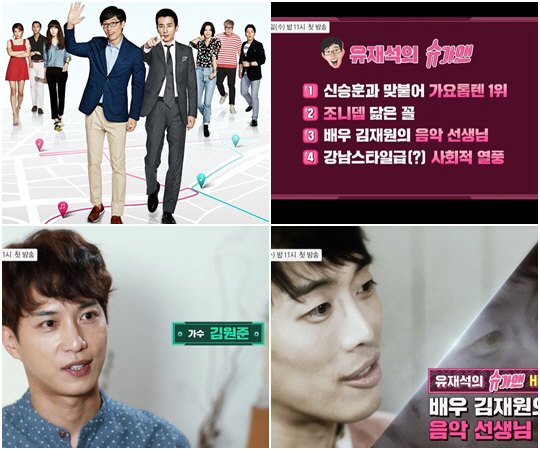 유재석 팀은 '슈가맨' 힌트로 "첫 째 신승훈과 맞붙어 가요톱텐 1위, 둘 째 조니뎁 닮은 꼴, 셋 째 김재원의 음악 선생님, 넷 째 강남스타일급 사회적 열풍"을 제시해 호기심을 자아냈다.