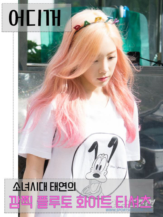 [어디꺼] 태연 출근길 속 깜찍표정 플루토 티셔츠?
