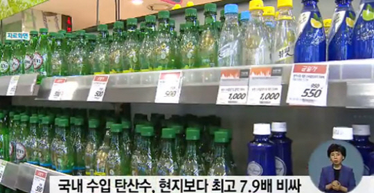 수입 탄산수 가격이 현지보다 최대 8배 가까이 비싼 것으로 조사됐다.