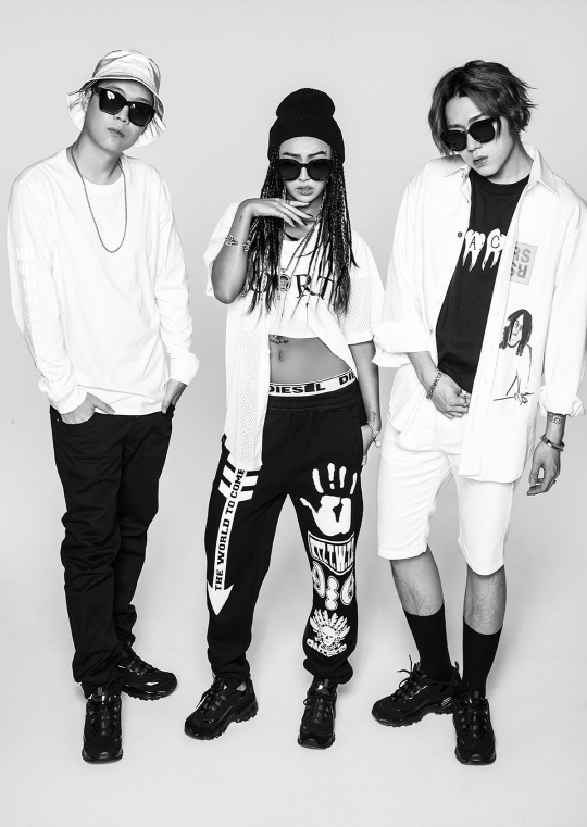 사진 속에는 섹시하면서도 카리스마 넘치는 포즈를 취하고 있는 팔로알토, 효린, 지코가 마치 한 팀과 같은 분위기를 자아내고 있어 시선을 끈다.
