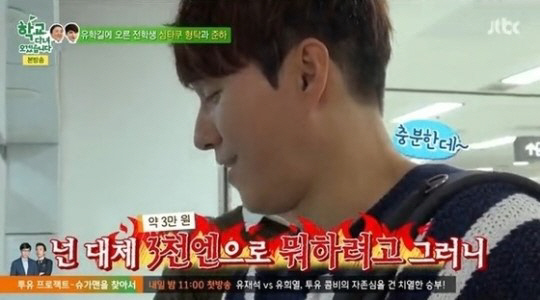 그러자 심형탁은 마음을 바꿔 "그럼 3만원을 환전하겠다"고 했고, 이에 정준하는 "너 3천엔(한화로 약 3만원)으로 뭘 하려고 하냐"며 답답한 심경을 토로해 웃음을 자아냈다. <스포츠조선닷컴>