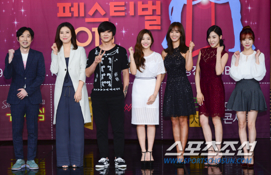 'DMC 페스티벌 2015' 제작발표회가 20일 오후 서울 상암동 MBC 사옥 골든마우스홀에서 열렸다. MC들이 무대에 올라 포즈를 취하고 있다. (왼쪽부터 이루마, 김성경, 윤도현, 예리, 유리, 티파니, 써니) 상암 MBC 1주년을 맞아 열리는 대형 한류문화축제 'DMC 페스티벌 2015'는 개막공연 'K-POP 슈퍼콘서트', 'MBC 라이오 DJ 콘서트', '나는 가수다 레전드 스페셜', '도시의 칸타빌레', '드라마 뮤직 콘서트', '서울 드라마 어워즈 2015', '특별생방송 복면가왕' 등의 세부 프로그램으로 구성됐다. 김성주, 티파니, 유리, 배철수, 써니, 예리, 윤도현, 이루마, 김성경, 성시경, 이유리, 김정은, 이동욱 등이 MC로 나선 가운데 9월 5일부터 13일까지 MBC광장 일원에서 행사가 펼쳐진다. 정재근 기자 cjg@sportschosun.com/2015.08.20/